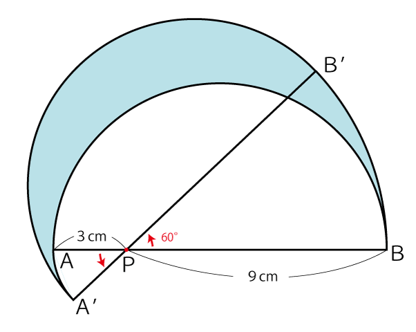 (もとの弧ABと、ABが移動してできた弧A'B'、BがB'に移動した軌跡、AがA'に移動した軌跡によって囲まれた部分)