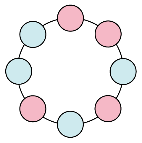 あるでしょうか。ただし、回転して並びが同じになるものは、同じ並べ方とみなすことにします。